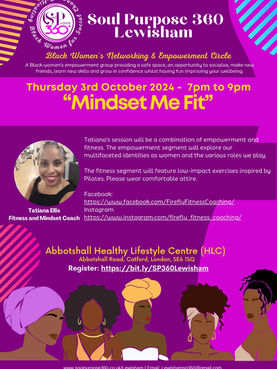 I facilitate with Soul Purpose 360 Lewisham, to help create a safe and empowering spaces for Black and minoritised women to grow in confidence, purpose, and self-belief. Driven by a shared desire to give back to my community, I inspire change, encourage reflection, and support women to thrive.